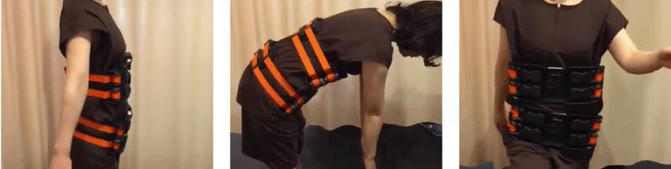 骨盤ユニットを装着して足踏み、歩行、スクワットなどの簡単な運動を行うと、徐々に骨盤が左右対称な状態に誘導されます。