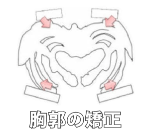 胸郭ユニットを装着し深呼吸、後屈運動、海鮮運動、上肢の運動などを行うと、徐々に胸郭の下部が左右対象に拡張できるようになります。